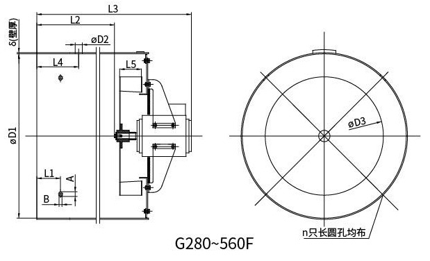| 型号 | φD1 | L1 | L2 | X | L3 | L4 | φD2 | φD3 | L5 | δ | A | B | n |