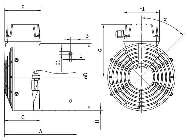 | 型号 | A | B | C | D | E | E1 | F | F1 | G | α |
