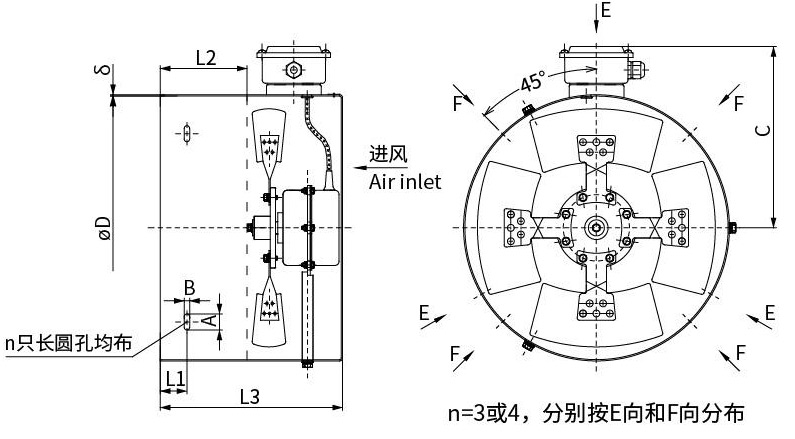 | 型号 | φD | L1 | L2 | L3 | δ | A | B | n | C |